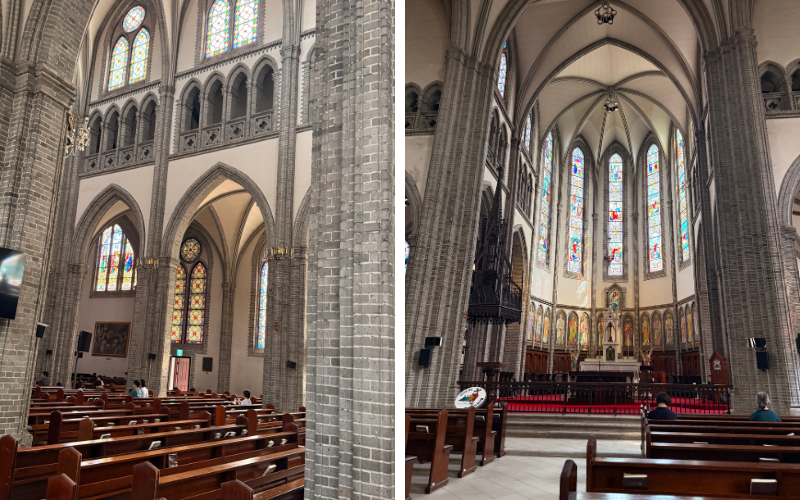 Der neugotische Baustil mit Spitzbögen, hohen Fenstern und dem schlanken Turm war für Korea ungewöhnlich. Die Kirche war die erste große katholische Kathedrale des Landes, und schon ihr Standort war ein Symbol: Myeong-dong war damals wie heute ein Zentrum von Handel und Begegnung. Dass sie im Herzen von Myeong-dong steht, zeigt, wie sehr der junge katholische Glaube damals sichtbar werden wollte.