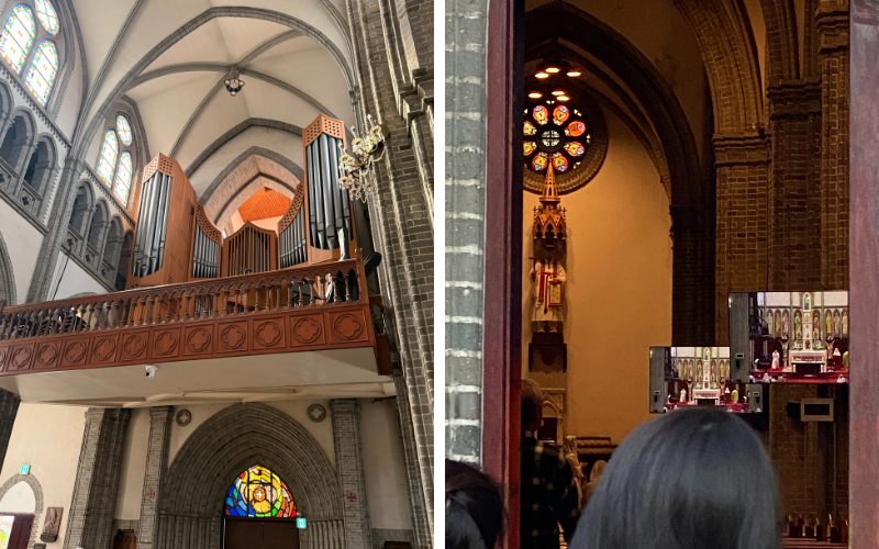 Architektonisch unterscheidet sich die Kathedrale deutlich von dem, was ich sonst in Korea gesehen habe. Während Tempel oft aus Holz bestehen und farbenfroh bemalt sind, wirkt der neugotische Stil eher nüchtern. Der Bau Ende des 19. Jahrhunderts entstand in einer Zeit, in der Korea noch stark von ausländischen Einflüssen abgeschirmt war. Umso bemerkenswerter ist es, dass man damals den Mut hatte, so ein Gebäude zu errichten. Es war nicht nur eine Kirche, sondern auch ein Zeichen. Ein Zeichen dafür, dass die katholische Gemeinde hier ihren Platz beansprucht.