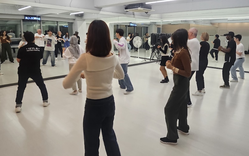 In der Dancejoa Academy in Gangnam tauchten wir in diese energiegeladene Welt ein. Zu dem Song Supernatural von NewJeans studierten wir unter Anleitung eines professionellen K-Pop-Dance Trainers in zwei intensiven Stunden eine beeindruckende Choreografie ein. Es war eine Mischung aus Spaß, Teamwork und schweißtreibendem Körpereinsatz – und ganz nebenbei ein echtes Workout!
