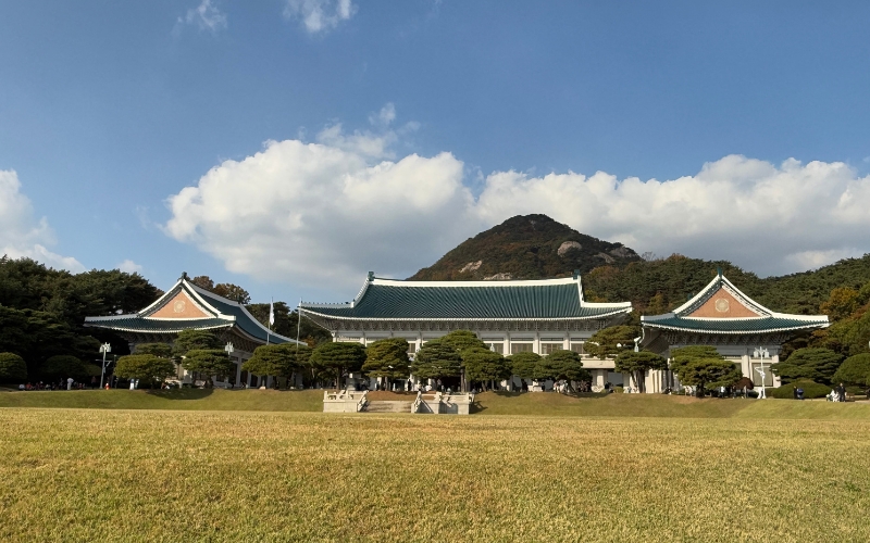 Am Nachmittag tauchten wir in die politische und historische Bedeutung Koreas ein: Unser Weg führte uns zum Blauen Haus (Cheong Wa Dae), dem ehemaligen Amtssitz des koreanischen Präsidenten. Dieser ikonische Ort, der bis 2022 das politische Machtzentrum des Landes war, beeindruckte mich nicht nur durch seine symbolträchtige Geschichte, sondern auch durch die atemberaubende Mischung aus traditioneller koreanischer Architektur und moderner Eleganz.