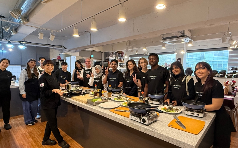 Der vierte Tag unserer gemeinsamen Tour begann mit einem besonderen Highlight: Wir besuchten die renommierte koreanische Kochschule Food & Culture Academy, um unter der fachkundigen Anleitung von Ellie Hyewon Lee die Kunst der Zubereitung eines authentischen Bibimbap zu erlernen.