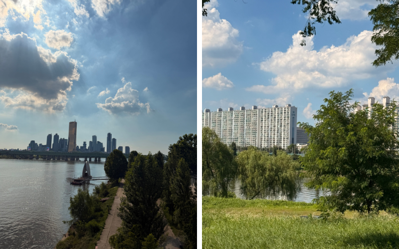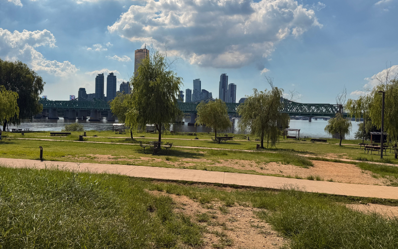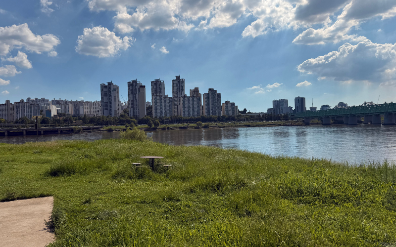 Wer an Seoul denkt, hat oft Paläste, Tempel und historische Plätze vor Augen. Doch das Bild der Stadt wäre ohne den Hangang nicht vollständig. An seinen Ufern verbringen die Koreaner ihre Freizeit. Im Sommer ist das für viele wie ein zweites Wohnzimmer. Auf Matten oder in kleinen Zelten sitzen oder liegen sie auf den Wiesen oder direkt am Ufer, essen dort, treffen Freunde oder sind mit der Familie zusammen. Oft bleiben sie den ganzen Tag bis in den späten Abend. Besonders in Yeouido ist das jedes Wochenende zu sehen.