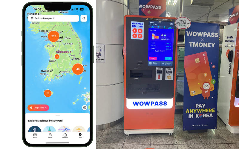 Die WowPass-Automaten stehen an zentralen Orten. Am einfachsten finde ich sie gleich nach der Ankunft am Flughafen Incheon, wo mehrere Maschinen in der Ankunftshalle zu finden sind. Auch in Seoul sind sie weit verbreitet, vor allem in großen U-Bahnhöfen. Insgesamt gibt es über 300 Aufladeautomaten in Korea. Die meisten stehen in Seoul und Busan, doch auch in Städten wie Daegu, Ulsan oder auf Jeju Island sind sie vorhanden. Wer möchte, kann die Karte sogar schon vorab online reservieren und dann am Automaten abholen. Für die Ausstellung wird ein Reisepass benötigt, da die Karte auf den Namen des Inhabers registriert wird.