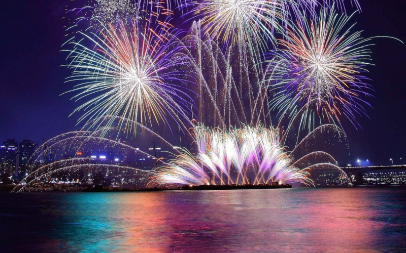 Was das Feuerwerk angeht, unterscheidet sich Korea übrigens stark von Deutschland. Während bei uns Menschen privat sehr viel Feuerwerk zünden und jedes Jahr zig Millionen Euro dafür ausgeben, ist privates Feuerwerk in Korea verboten. Dort gilt Feuerwerk als Sprengstoff und darf nur von lizenzierten Profis bei offiziellen Events gezündet werden. Wer erwischt wird, muss mit Strafen rechnen. Deshalb gibt es in Korea ausschließlich organisierte, professionelle Feuerwerke bei bedeutenden Veranstaltungen.