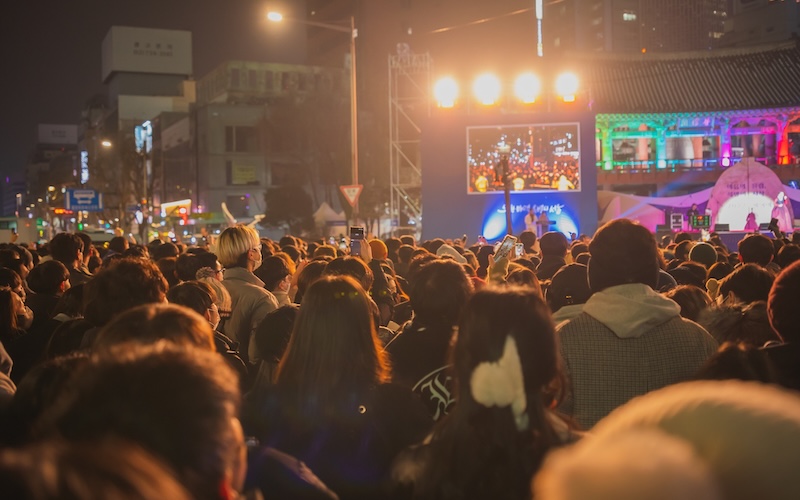 Auch am Gwanghwamun-Platz wird gefeiert. Dort läuft die Seoul Light Show bis nach Mitternacht und zieht ebenfalls viele Besucher an. Die gesamte Innenstadt steht an diesem Abend im Zeichen des Lichts und der Gemeinschaft.