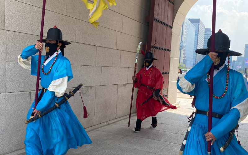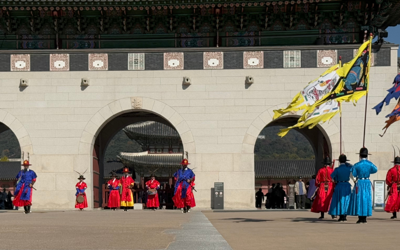 Wenn die Ablösung vollzogen ist, ziehen die abgelösten Wachen geordnet vom Platz. Die Trommeln schlagen erneut, die Reihen marschieren geschlossen ab. Damit endet die Zeremonie mit derselben Würde, mit der sie begonnen hat. Viele Gäste aus aller Welt sind von dieser Wachablösung begeistert, und für manche wirkt sie fast wie eine Szene aus einem historischen K-Drama.